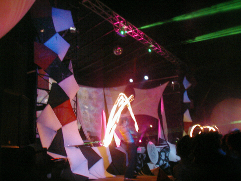 火の点いた棒をくるくる回すパフォーマンスが、、。